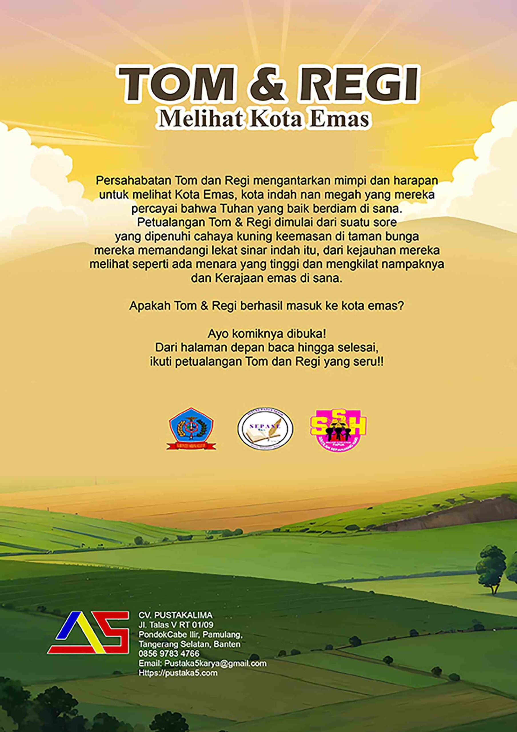 Kota Emas begitu megah dan indah, di dalam kota emas mereka melihat tembok Kerajaan yang terbuat dari emas, udara yang sejuk, dan nyanyian yang Indah. Di sana mereka pun bertemu banyak anak-anak dan Tuhan yang baik. Tuhan yang baik berpesan agar Tom & Regi harus selalu membagi sukacita dan kebaikan bagi semua orang. Komik ini berlatar Papua dan sarat akan nilai Pendidikan karakter bagi anak-anak. Komik ini menjadi wadah bacaan kontekstual Papua dan bernuansa karakter.